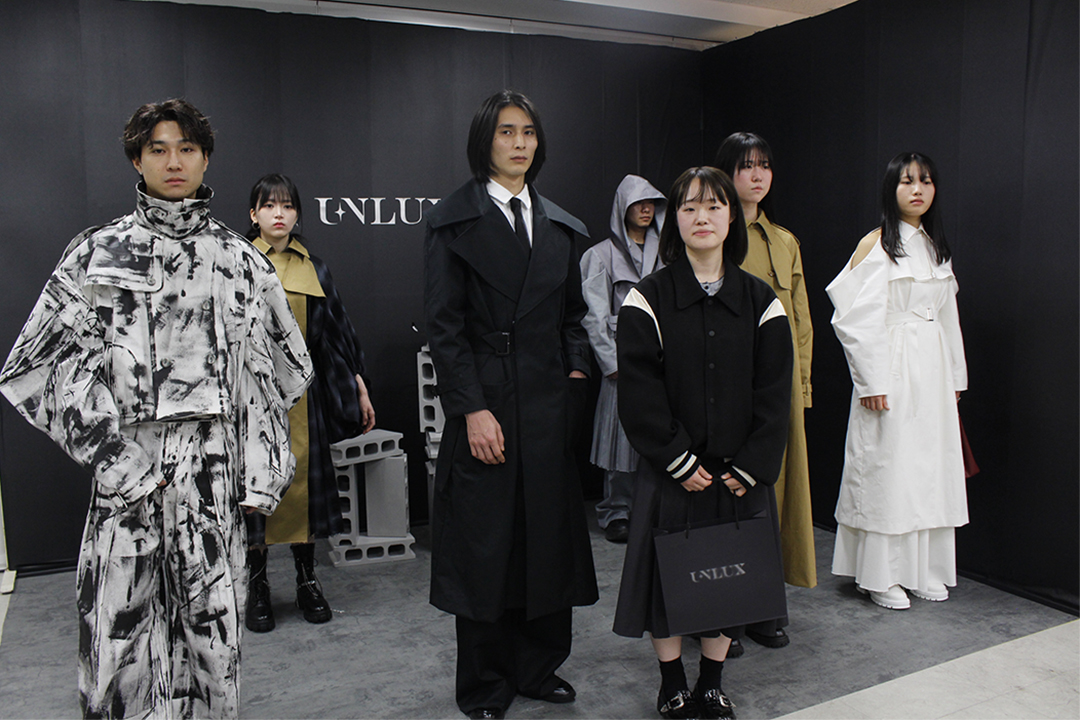 高度アパレル専門科4年生は、4年間の集大成として5体以上のコレクション作品を制作。各自のブランディングに基づいて企画した展示ブースで、プレゼンテーションによる審査会を行いました。