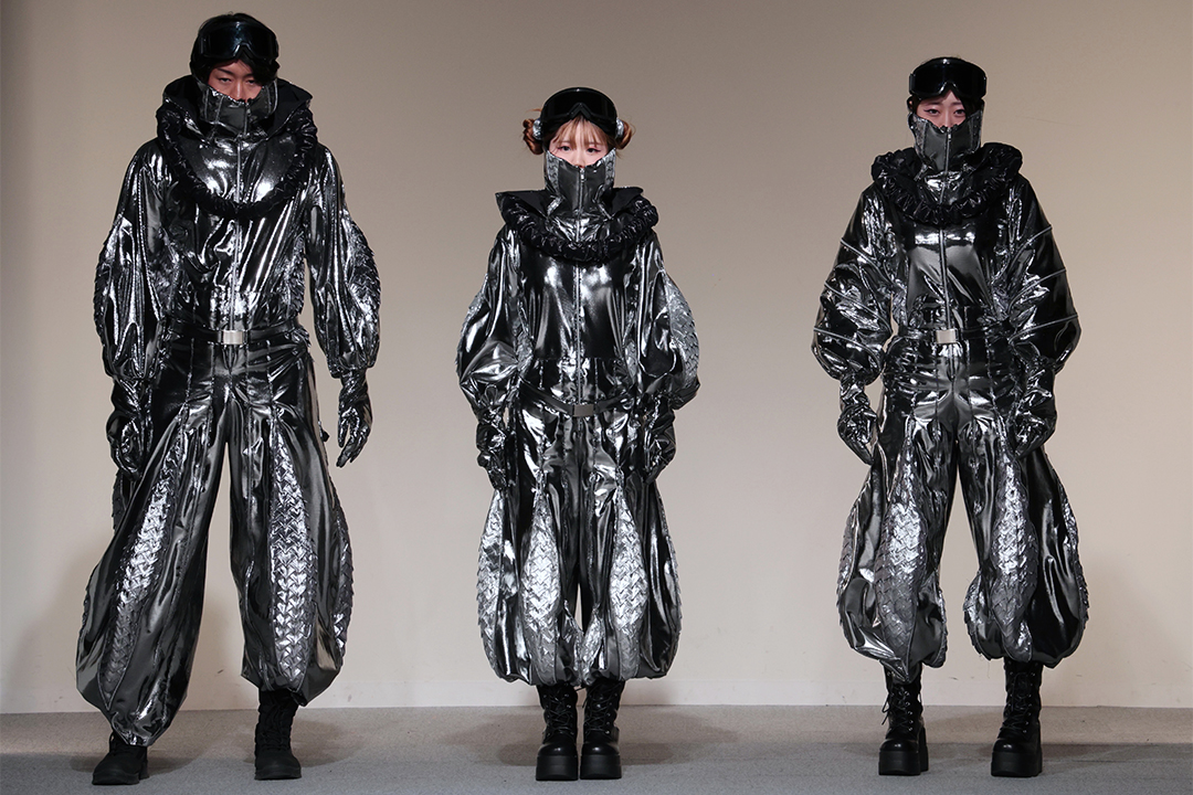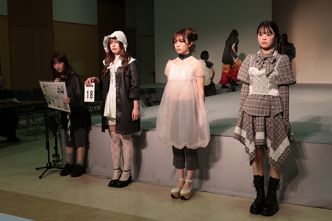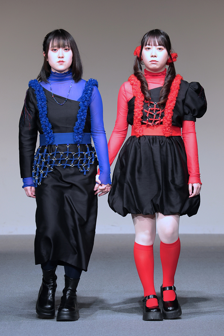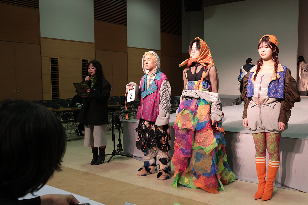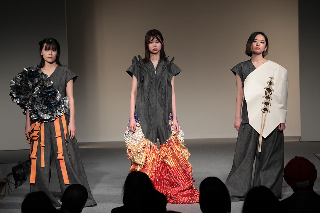 アパレル技術科は、3年間の集大成として、テーマとコンセプトに基づいた2体以上のコレクション作品をデザイン・制作。アパレルデザイン科と合同で審査会を行いました。
