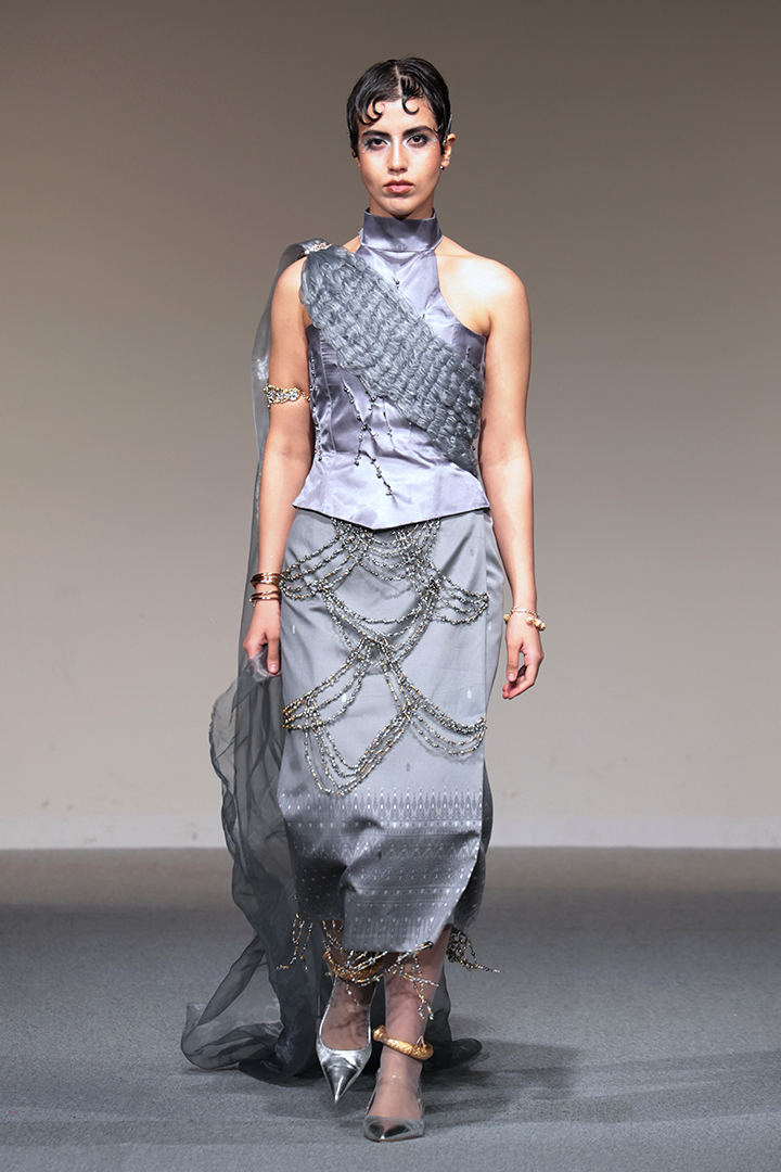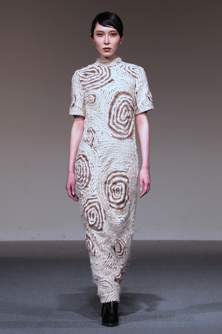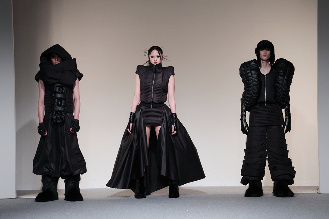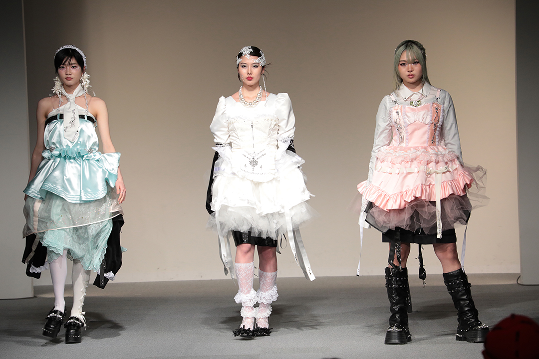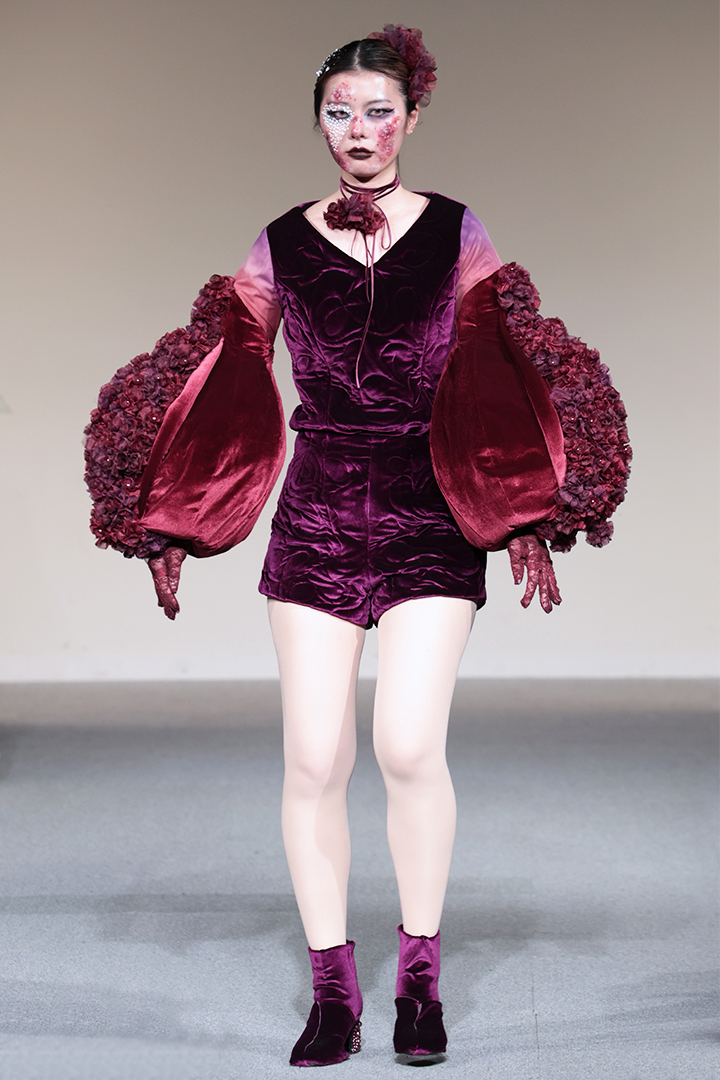 アパレル技術科は、3年間の集大成として、テーマとコンセプトに基づいた2体以上のコレクション作品をデザイン・制作。アパレルデザイン科と合同で審査会を行いました。